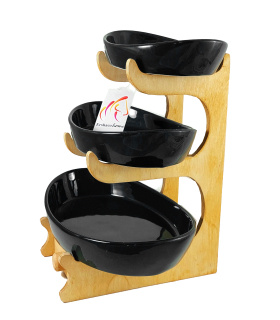 • ظرف سه طبقه پذیرایی اِرمیک سرامیکی پایه چوبی کشو دار ermeek