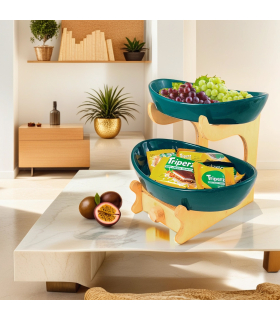 • ظرف دو طبقه پذیرایی اِرمیک سرامیکی پایه چوبی کشو دار ermeek