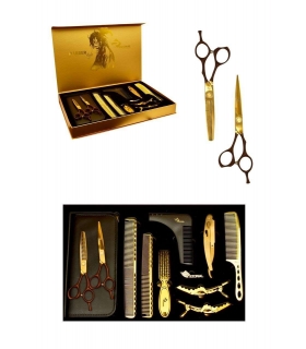 ست قیچی آرایشگری رزونال قیچی کات و کوتاهی/ پیتاژ /شانه حالت دهی و ریش/دسته تیغ Rezonal S4