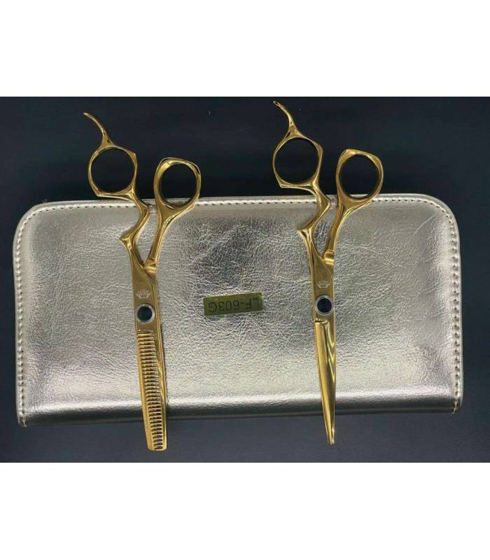 ست دو عددی قیچی آرایشگری جگوار کات و کوتاهی/پیتاژ طلایی Jaguar LF-603G